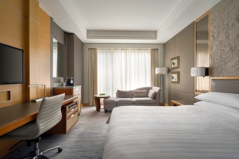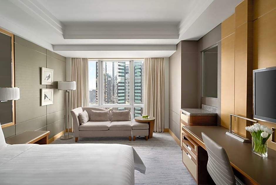 Located on the floors 16 to 21, each room offers sweeping views of Beijing's cityscape through floor to ceiling windows. It has a 40-inch flat-screen TV with DVD player, iPod docking station and a Nespresso coffee machine.